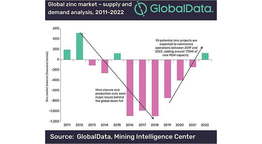 "Hoewel het wereldwijde zinkaanbod in 2018 met 1,5% toenam tot 13,4 miljoen ton, was er nog steeds een tekort van 1,1 miljoen ton van de wereldwijde vraag van 14,5 miljoen ton in dat jaar”, vertelt Vinneth Bajaj, mijnbouwanalyst bij GlobalData.